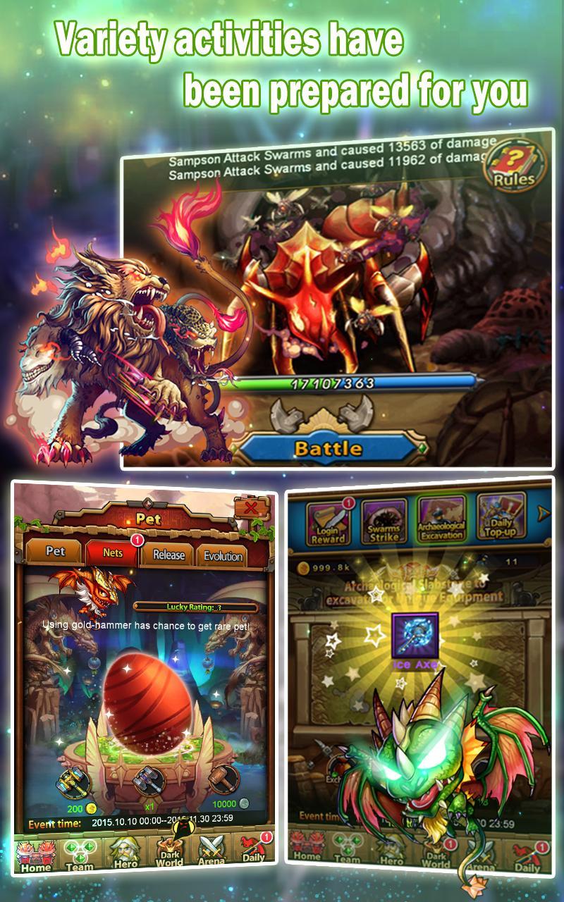 - Сражайтесь и исследуйте мир Титана, найдите редких героев и редких домашних животных, посмотрите, есть ли у вас то, что нужно, чтобы убедить их присоединиться к вам!